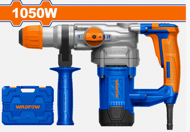 WADFOW WRH2D26 perforatory kuwwatly wertikal elektrik dwigateli bilen enjamlaşdyrylandyryldy. Bu gural gurluşyk we gurnama işlerinde, öý abatlaýyşlarynda, tebigy daşlarda, betonda, kerpiçde deşik açmakda, şeýle hem agaç, metal, keramika we sintetiki materiallary burawlamakda ulanylýar. Käbir häsiýetnamalary: Kuwwaty: 1050 W Maksimal urgy güýji: 4,5 J Napraženýesi: 220–240 W, ýygylygy: 50/60 Gs Şpindeliň aýlaw ýygylygy: 1100 aýlaw/min Urgy ýygylygy: 3800 urgy/min Buraw bilen maksimal burawlamak diametri (beton): 26 mm Maksimal burawlamak diametri (metal): 13 mm Maksimal burawlamak diametri (agaç): 40 mm