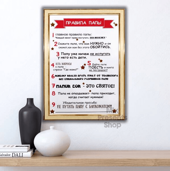 Постер "Правила папы" А4 в рамке