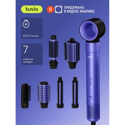 Фен-щётка с ионизацией Tuvio HBI1415, 7 насадок, фиолетовый