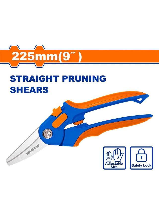 Ölçegi: 9 dýuým (225 mm) Doly metal çarçuwa, has berklik Ýokary hilli göni sekatorlar Uly/kiçi el funksiýasy 55 # uglerodly polatdan lýezwiýa Termiki işlenip taýýarlanylan Teflon örtükli Termoplastik rezin (TPR) örtükli polipropilen (PP) tutawaç Blisterde gaplanan