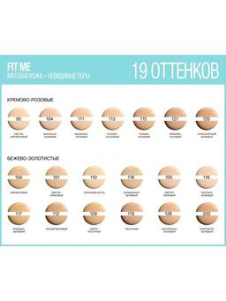 Aýratynlyklary Reňk: №112 ТЕПЛЫЙ БЕЖЕВЫЙ Göwrümi: 30ml Düşündiriş “Fit Me” tonal kremi, maskanyň täsiri bolmazdan, derini tebigy mat bilen üpjün edýär. Palçyk * we pudra bölejikleri bolan formula gabat gelýär, gözenekleri gizleýär we ýagly örtükleriň döremeginiň öňüni alýar. Kremiň ýeňil gurluşy deň derejede ulanylýar we paýlanýar. “Fit Me” tonal kremi bütin gün dowam edýär, aşa ýeňil we deride dem alýar. 19 reňkli giň palitra dogry ton saýlamaga mümkinçilik berer. * Palçykdan ýasalan önüm Ulanyş tertibi Önümiň az mukdaryny maňlaýdan eňek çyzygyna çenli nemlendirilen ýüzüňize sürtüň, barmaklar ýa-da gubka bilen ýaýradyň.