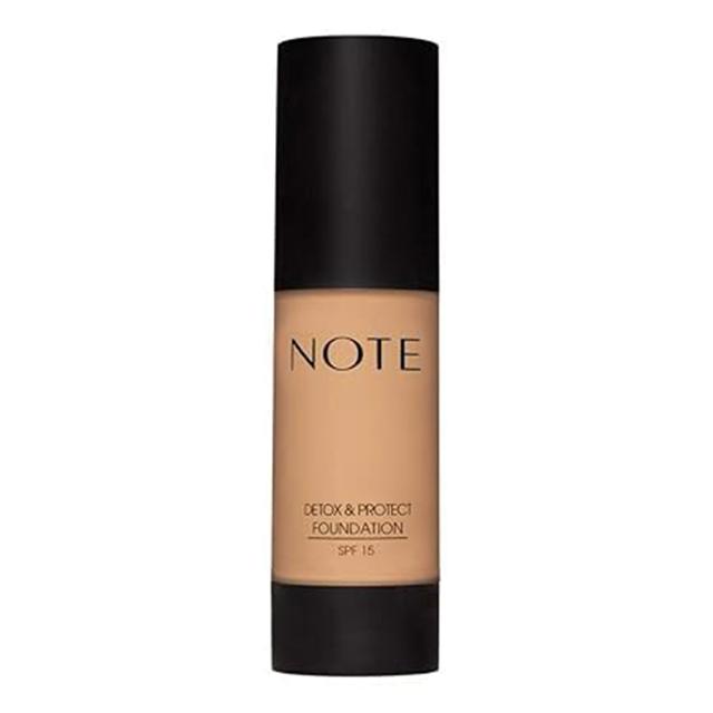 NOTE Detox & Protect Foundation tonal esasy — №05 (30 ml) NOTE Detox & Protect tonal esasy — kemsiz tonuň we antioksidant ideginiň wezipelerini birleşdirýän innowasion önümdir. Süýtli badam ýagynyň, hamyrmaýa ekstraktlarynyň we witamin E-niň ýörite toplumy erkin radikallaryň täsirini zyýansyzlandyrýar we derini daşky gurşawyň ýaramaz şertlerinden goraýar. №05 (Honey Beige) reňk öwüşgini — maýyl öwüşginli çuň bež tondur, ol bugdaýreňk we eýlenen deri üçin kemsiz utuşýar. Kremiň ýüpek ýaly gurluşy dykyz örtügi we tebigy atlas netijesini üpjün edip, ähli kemçilikleri gizleýär. SPF 15 goragy saýasynda, deri gün şöhlelerinden we wagtyndan öň garalmakdan gün boýuň ygtybarly goralýar.