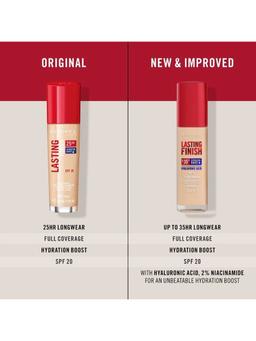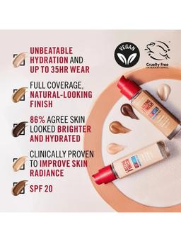 Aýratynlyklary Reňk: №103 TRUE IVORY Göwrümi: 30ml Düşündiriş “RIMMEL Lasting Finish 25 Hour” tonal kremi, rahatlyk serumu bilen günüň dowamynda deň, tebigy deri reňkini üpjün edýär. Inçe gatlakda ýatýar, yssy we çyglylyk şertlerinde-de ýaglanmaýar. Dykyz gurluşy we ýeňil, özüne çekiji ysy bar. Bu gural deriniň kemçiliklerini ygtybarly gizleýär we ýeňilleşdirýär. Maskanyň täsirini döretmeýär we ýygyrtlara ünsi çekmeýär, mümkin boldugyça tebigy görünýär. Gialuron turşusynyň düzümi sebäpli RIMMEL-iň “Lasting Finish” kremi suw-lipid deňagramlylygyny saklaýar. Derini UV şöhlelerinden, wagtyndan öň garramakdan we guraklykdan goraýar. SPF 20 güne garşy faktor bar. Serum we E witamini binýady diňe bir kemsiz deri däl, eýsem ajaýyp rahatlygy üpjün edýän näzik bejergä öwürýär. Ulanylandan soň deri ýumşak, nemlendirilýär we goralýar. Arassalanan derä kremi ulanyp birnäçe minutdan soň pudra ýa-da rumýana ulanyp bilersiňiz. Ulanyş tertibi Arassalanan derä göni çalyň. Esasy ulanmazdan ozal, makiýaž bazasynyň derä doly siňmegi üçin birnäçe minut garaşyň.