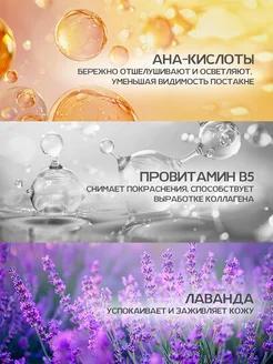 Deriniň ähli görnüşleri üçin Deriniň gurluşyny we äheňini çykarmaga kömek edýär, gözenekleri ýuwaşlyk bilen arassalaýar we berkidýär, düwürtikden soňky yzlaryň görünmegini azaldýar, täzeleýär we tonlaýar. Deriniň ähli görnüşleri üçin amatly. AHA kislotalary ýumşak siňdiriji täsir edýär, deriniň tonusyny ýeňilleşdirmäge we hatda çykarmaga kömek edýär. Provitamin B5 epidermisiň barýer işini gowulandyrýar, gyzarmagy ýeňilleşdirýär we kollagen önümçiligini ösdürýär, derini has duýgur edýär. Kompozisiýa Suw, lawanda gidrolaty, dekil glýukozid, gliserin, D-pantenol (B5 provitamin), aloe vera jeli, glikolik kislotasy, malik kislotasy, tartar turşusy, limon kislotasy, maltodektrin, inulin, allantoin, benzil alkogoly, kaliý sorbaty, natriý benzoat, lawanta ekstrakty Ulanmak üçin görkezmeler Toneri pagta ýassygy bilen öňünden arassalanan derä sürtüň, ýüzüňizi, boýnuňyzy we dekollet meýdanyny ýeňil hereketler bilen süpüriň.