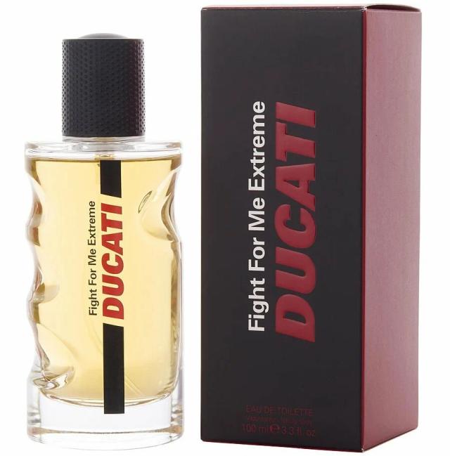 Ducati men Fight For Me - Extreme (100 ml) taharet suwy — bu 2012-nji ýylda çykarylan intensiv, dinamikaly we erkek atyrydyr. Ol agaçly fužer / aromatiki (Woody Fougere / Aromatic) toparyna degişlidir. Atyr Dýukati motosport dünýäsi bilen baglanyşykly adrenalin, bäsleşige bolan höwes we erkekleýin tutanýerliligi özünde jemleýär. "Extreme" goşulmasy asyl nusgadan has çuň, güýçli we durnukly görnüşini görkezýär. Ýokarky notlar Bergamot, Limon, Kardamon Ýiti, sitrusly we ysmaly başlangyç, kompozisiýa dessine energiýa we täzelik berýär. Orta notlar Lawanda, Geran, Deňiz notalary Klassiki, fužer we aromatiki ýürek. Lawanda we geran arassa, erkekleýin we birneme salkyn akkord döredýär. Esasy notlar Kedr, Paçuli, Ambra Çuň, agaçly we ýerli-ambraly esas. Paçuli we kedr "Extreme" durnuklylygy we güýçli, ynamly yzy üpjün edýär. Fight For Me - Extreme — bu agaçly-sitrusly, ysmaly we güýçli atyrdyr. Ol energik, täze we aýdyň erkekleýin esasy bilen tapawutlanýar. Gündelik ulanmak, işjeň ýaşaýyş we goşmaça dinamika zerur bolan salkyn howa möwsümi üçin ideal.