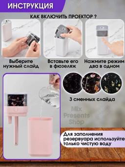 Awtoulag, öý, ofis üçin howa çyglandyryjy-proýektor. (1sany) Reňkler: ak, ýaşyl, gülgüne. Ýokary hilli ABS materialyndan ýasalan howa çyglandyryjy we ekologiýa taýdan arassa. Göwrümi: 250 mlIşleýiş wagty: göni sepmek üçin 4 sagat, aralyk sepmek üçin 6 sagatHil: ultrases, ulanmak aňsat, göçmeÖlçegi: 6. 5 sm x 6. 5 sm x 14,5 sm / Kuwwaty: USB3 surat (slaýd) komplektde