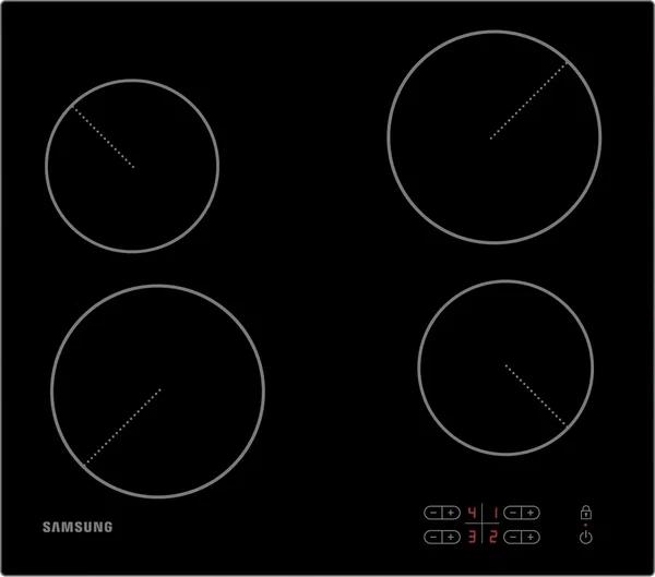 Samsung NZ64T3506AK / WT merkezi, 4 sany ot ýakýan elektrik garaşsyz aýna-keramiki panel. Aýratynlyklary: hapalardan we ýag sepmekden aňsat; aýna-keramiki ýer kän gyzmaýar, sebäbi hapalar üstünde bişmeýär.