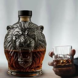 Arslanyň kellesi şekilli aýna şerap çüýşesi