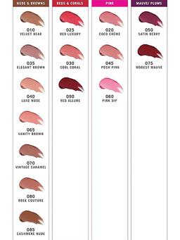 Aýratynlyklary Reňk: №045 POSH PINK Göwrümi: 3.5ml Düşündiriş Täze “Max Factor Lipfinity Velvet Matte Lipstick” bilen tanyşdyrmak: nemlendiriji, suw geçirmeýän we rahat suwuk pomada, dodaklarda 24 sagada çenli durýar. Mat dokumasy zerurlyklaryňyza uýgunlaşyp, dodaklara baý we uzak reňk berýär. Formula dodaklaryň näzik derisini guratmaýar we kokos ýagyna esaslanýan nemlendiriji maddalaryň kömegi bilen iň ýokary rahatlygy üpjün edýär. Täzeçillik formulasy, pomada dodaklara çalt ornaşmaga mümkinçilik berýär, mat we uzak wagtlap täsir edýän çuň, baý reňk berýär. Ulanyş tertibi Arassa dodaklara pomada çalyň (dodaklaryňyzy gysmaň), 60 sekunt garaşyň, pomada dodaklaryň üstünde durar.